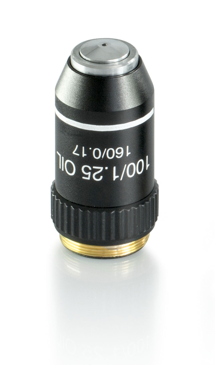 Achromatic objective lens, 100 x /1,25 (oil) (sprung) W.D. (0,07 mm) OBB-A1109