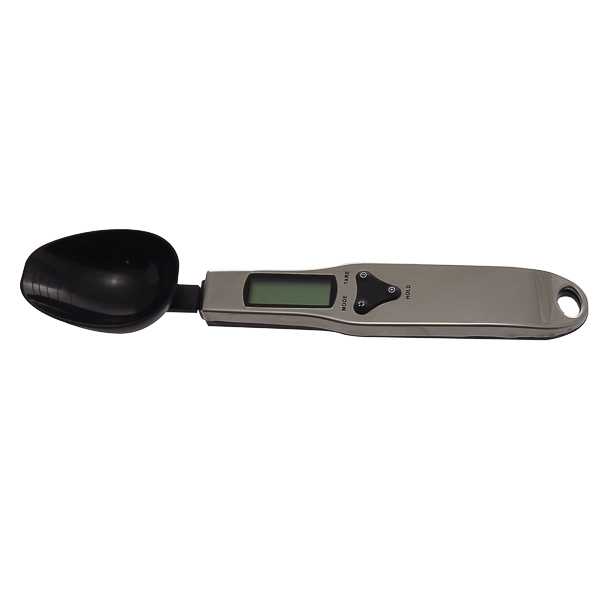 Tare function. LCD screen. Battery: 2 x AAA, included. Auto turn off: 60s. Units: g, kg, oz, ct, lb, tl. Body dimensions: 230 x 50 x 25 mm. Spoon dimensions: 60 x 50 x 25 mm