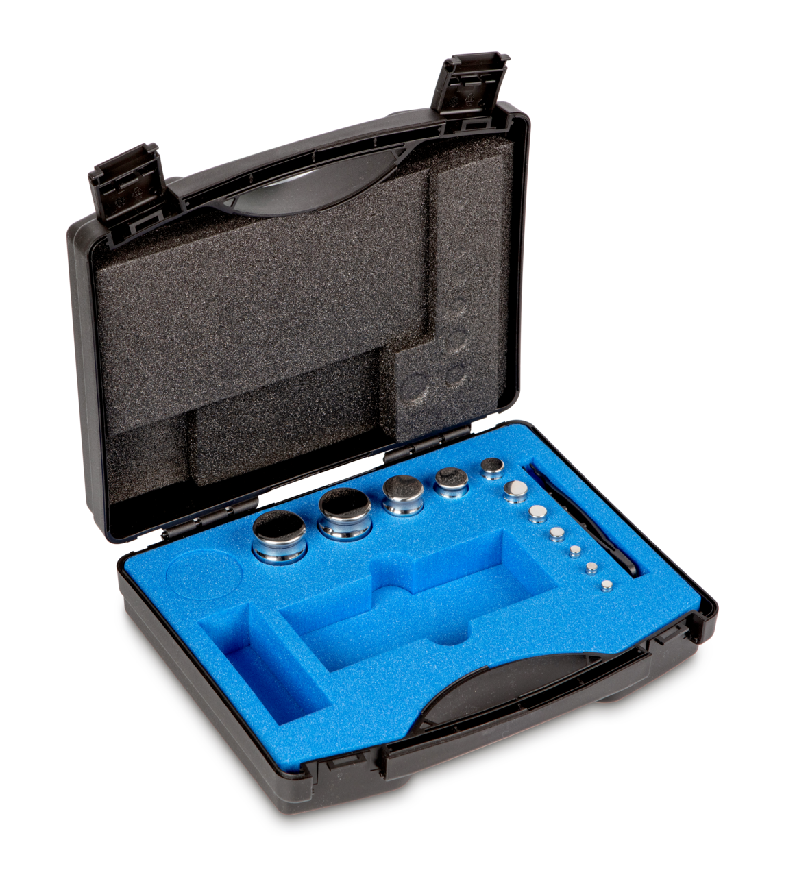 Set of weights 312-044, OIML Class E2, Nominal value 1 g – 200 g, Compact form, stainless steel polished (OIML), in plastic case