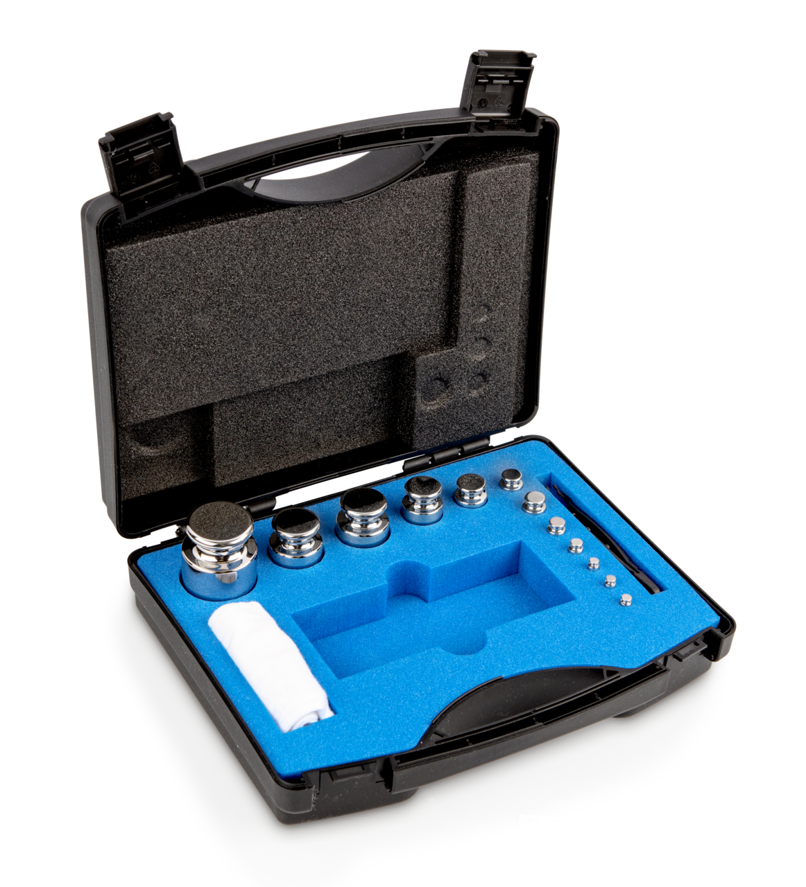 Set of weights 314-054, OIML Class E2, Nominal value 1 g – 500 g, Knob, stainless steel polished (OIML), in plastic case