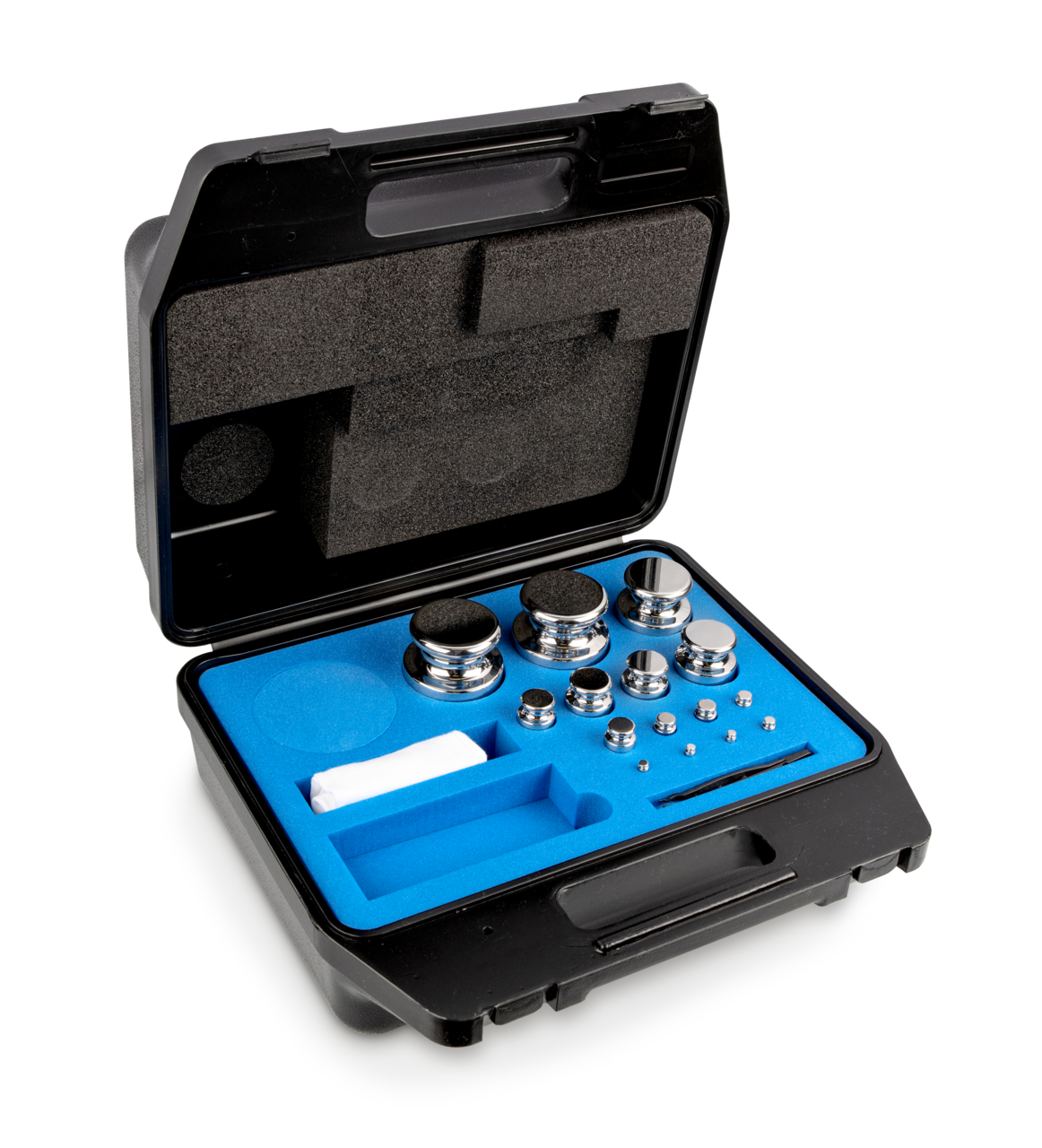 Set of weights 314-074, OIML Class E2, Nominal value 1 g – 2 kg, Knob, stainless steel polished (OIML), in plastic case